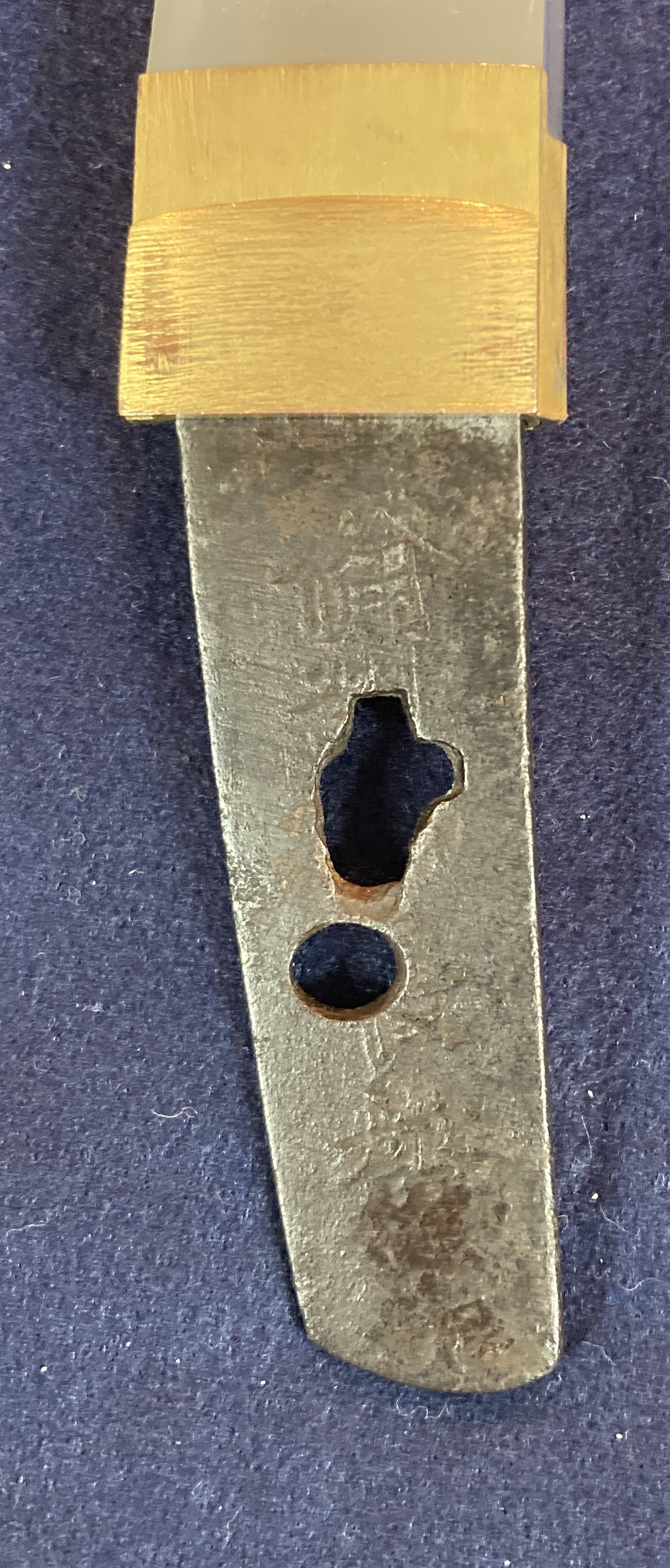 ちなみに棒樋については茎先まで搔き通して銘字が少し切れていますので、丸留めだったのを軽量化の為に樋先を伸ばしたのか、もしくは後樋の可能性があります。