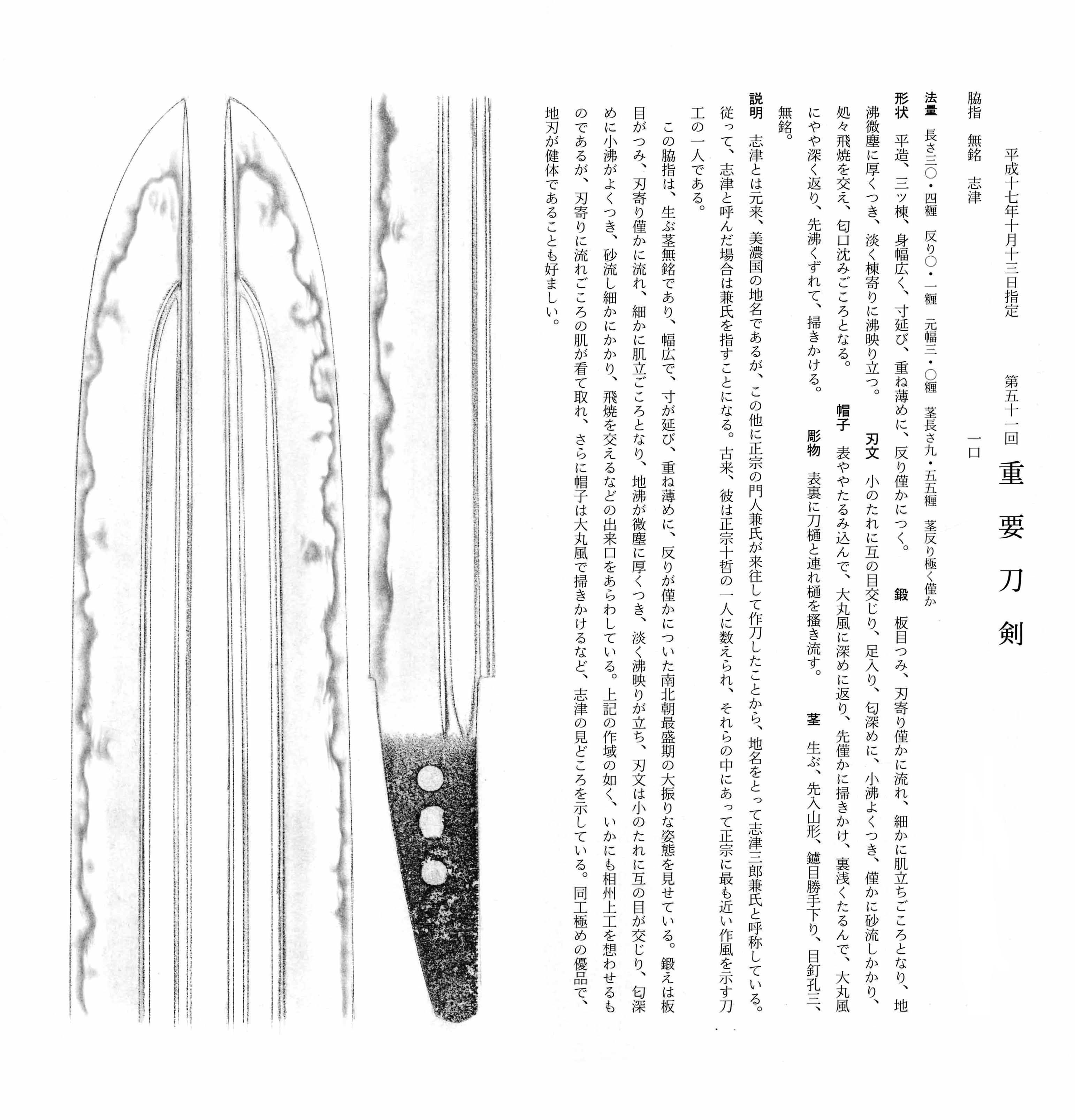 寸法が七寸二分と小振りで、身幅尋常で内反り、三ツ棟の頂点に幅があります。