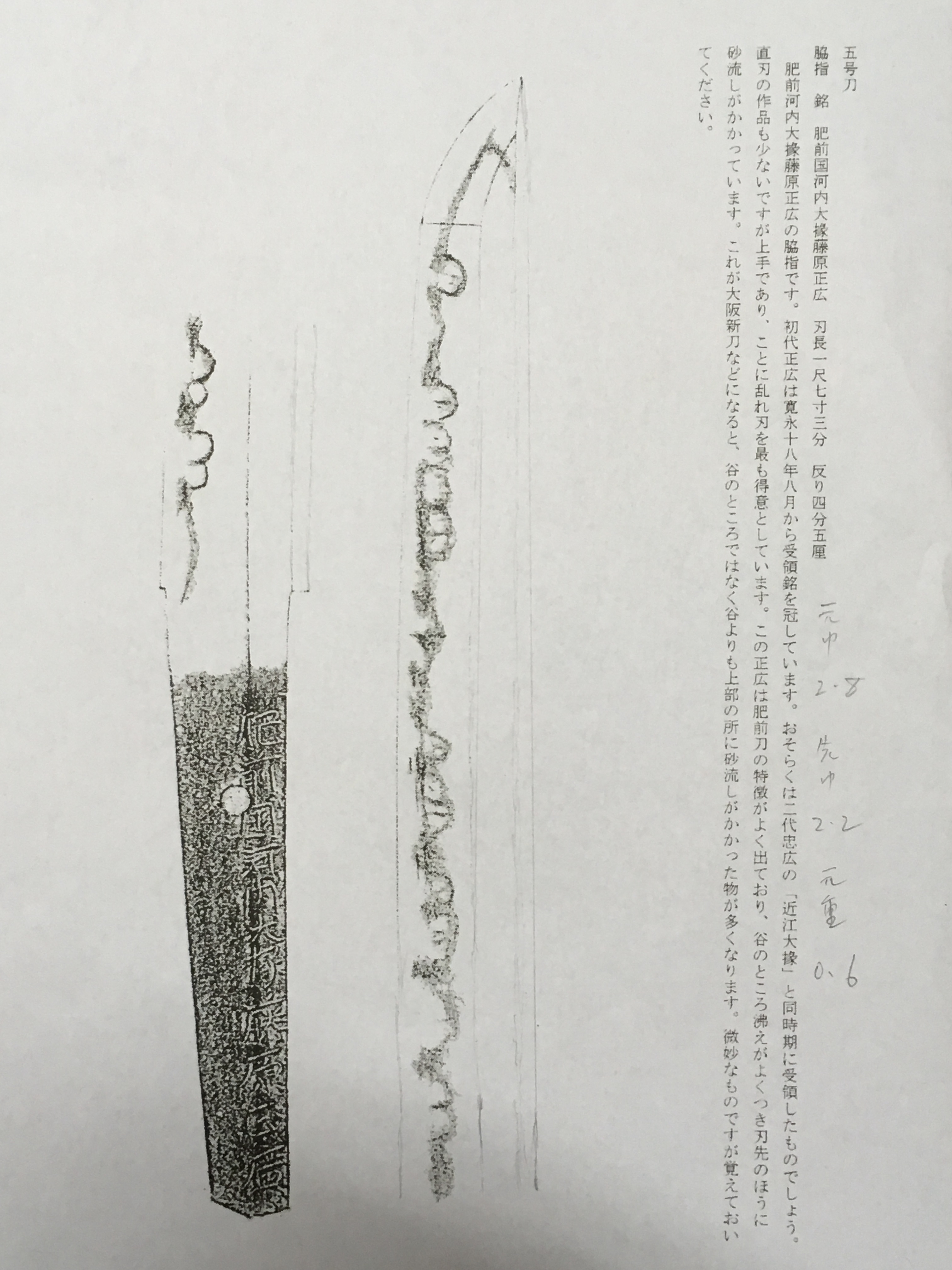 2号刀 脇指 銘 肥前國河内大掾藤原正廣